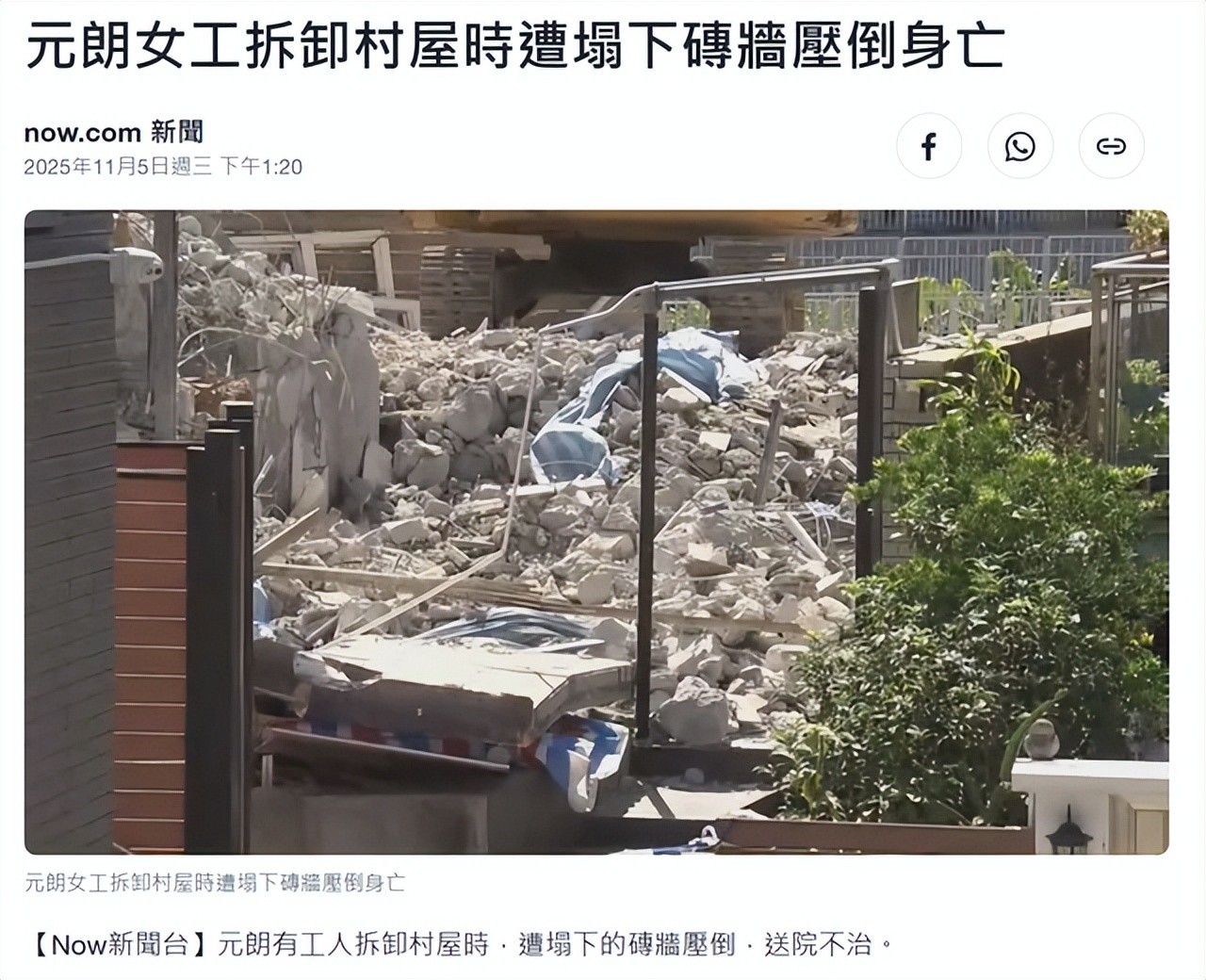 5. 更令人瞠目的是,现实几乎同步上演——2023年11月5日,《新闻女王2》首播当天,香港元朗一处村屋在清拆围墙时,砖墙轰然倒塌。