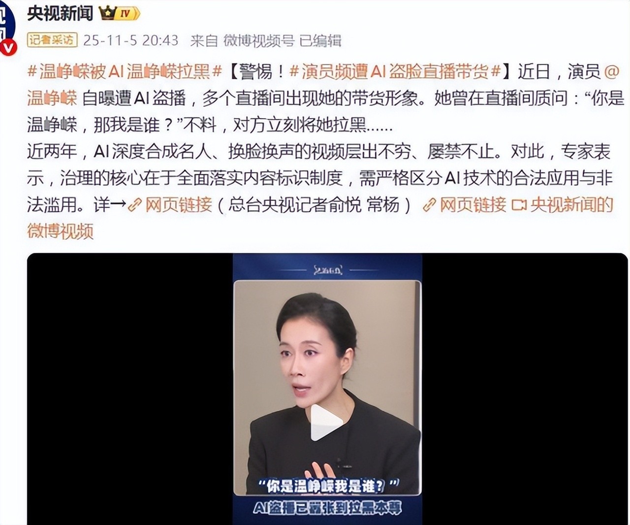 45. 演员温峥嵘近日爆料,自己在网上刷到名为“AI温峥嵘”的账号正在进行直播带货。
